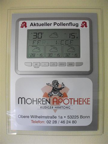 Kaum sind die Tage wieder länger und das Wetter angenehmer, werden Pollenallergiker von ihrer lästigen Plage heimgesucht. Um tränende Augen und laufende Nasen zu vermeiden, gehen Sie den Allergenen aus dem Weg! Die ALLERGO-Wetterstationen informieren über die aktuelle Pollenflug-Situation für die 14 häufigsten allergieauslösenden Pflanzen in Ihrer Region. Gleichzeitig erhalten Sie eine Profi-Wetterprognose für mehrere Tage.
